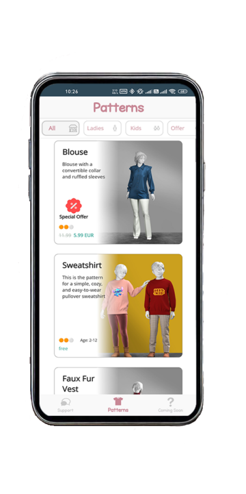 There are countless ways to express yourself through clothing, but our app focuses on simplicity and innovation. With virtual try-on features and easy-to-use patterns, we make fashion design accessible and fun. No more guesswork or frustration—just seamless creativity. Let your imagination shine without any barriers.